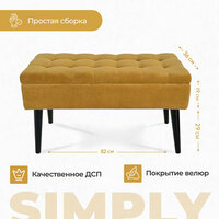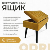 Каркас пуфа, банкетки выполнен из качественной ДСП на который укладывается толстый слой наполнителя, а затем обтягивается мебельной тканью. Конструкция дополняется черными ножками. Пуф имеет вместительный ящик для хранения различных мелочей, что никогда не бывает лишним. Металлический подъёмный механизм удерживает крышку при открытии, что бесспорно очень удобно в исполнении. Специальные утяжки на крышке являются не только элементом декора, благодаря им ткань не будет морщиться и сминаться. Да это еще и просто красиво! Рекомендованная нагрузка 110кг. Сборка пуфа не составит Вам труда, необходимо только прикрутить ножки и О-ля-ля, какая прелесть!
