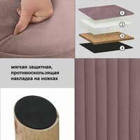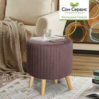 Этот стильный и удобный круглый пуф на ножках от Сон-Сервис станет отличным дополнением для любого интерьера. Он сочетает в себе комфорт, практичность и изысканный дизайн, идеально подходит для использования в прихожей, спальне или гостиной. Пуф выполнен из мебельного ДСП, выдерживает большие нагрузки до 120 кг, что делает его прочным и надежным для использования людьми любого телосложения. Ножки выполнены из массива Березы высотой 150 мм. Обивка выполнена из Велюра, не впитывает влагу, антивандальная, не деформируется в процессе эксплуатации и защищает пуф от повреждений, вызванных когтями домашних животных.