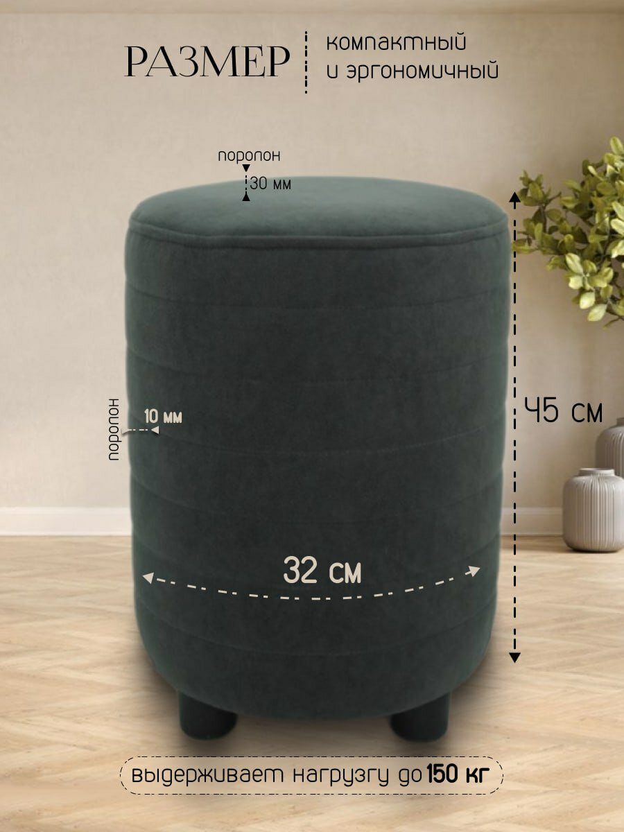 Пуфик в прихожую спальню, круглый 32*32*45, антивандальный велюр, графит: сравнение цен, характеристики, фото, актуальное наличие и цены.