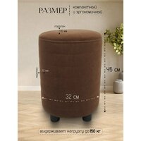 Пуфик в прихожую спальню, круглый 32*32*45, антивандальный велюр, коричневый: сравнение цен, характеристики, фото, актуальное наличие и цены.