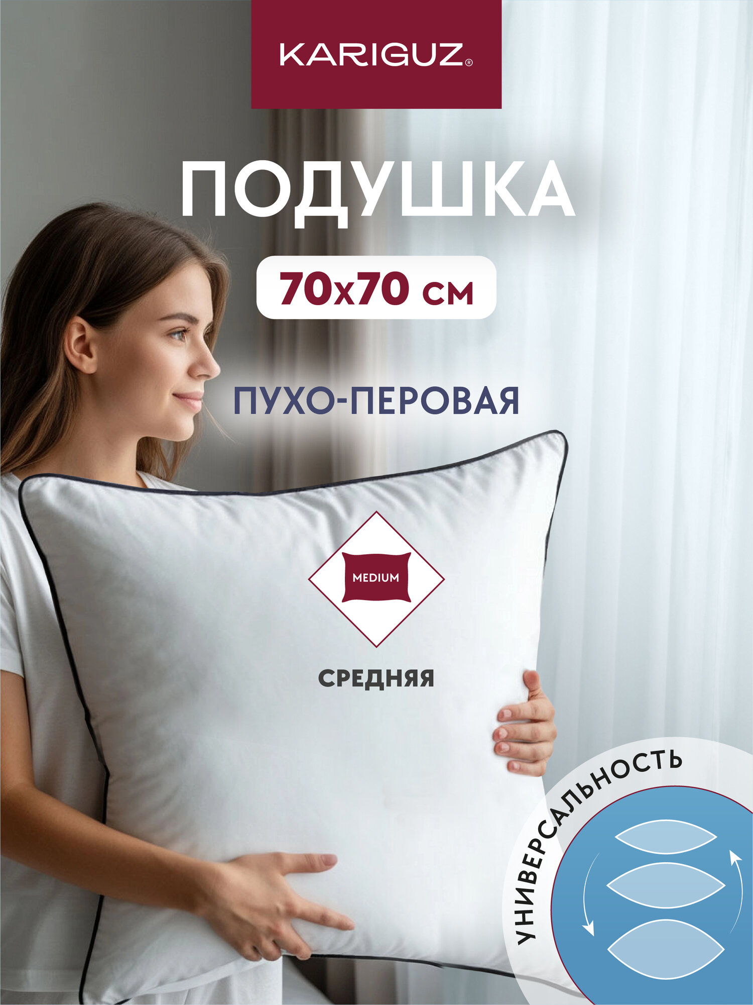 Пухоперовая Подушка Kariguz «Фортуна» 70×70, средняя поддержка, хлопковая, белая: сравнение цен, характеристики, фото, актуальное наличие и цены.