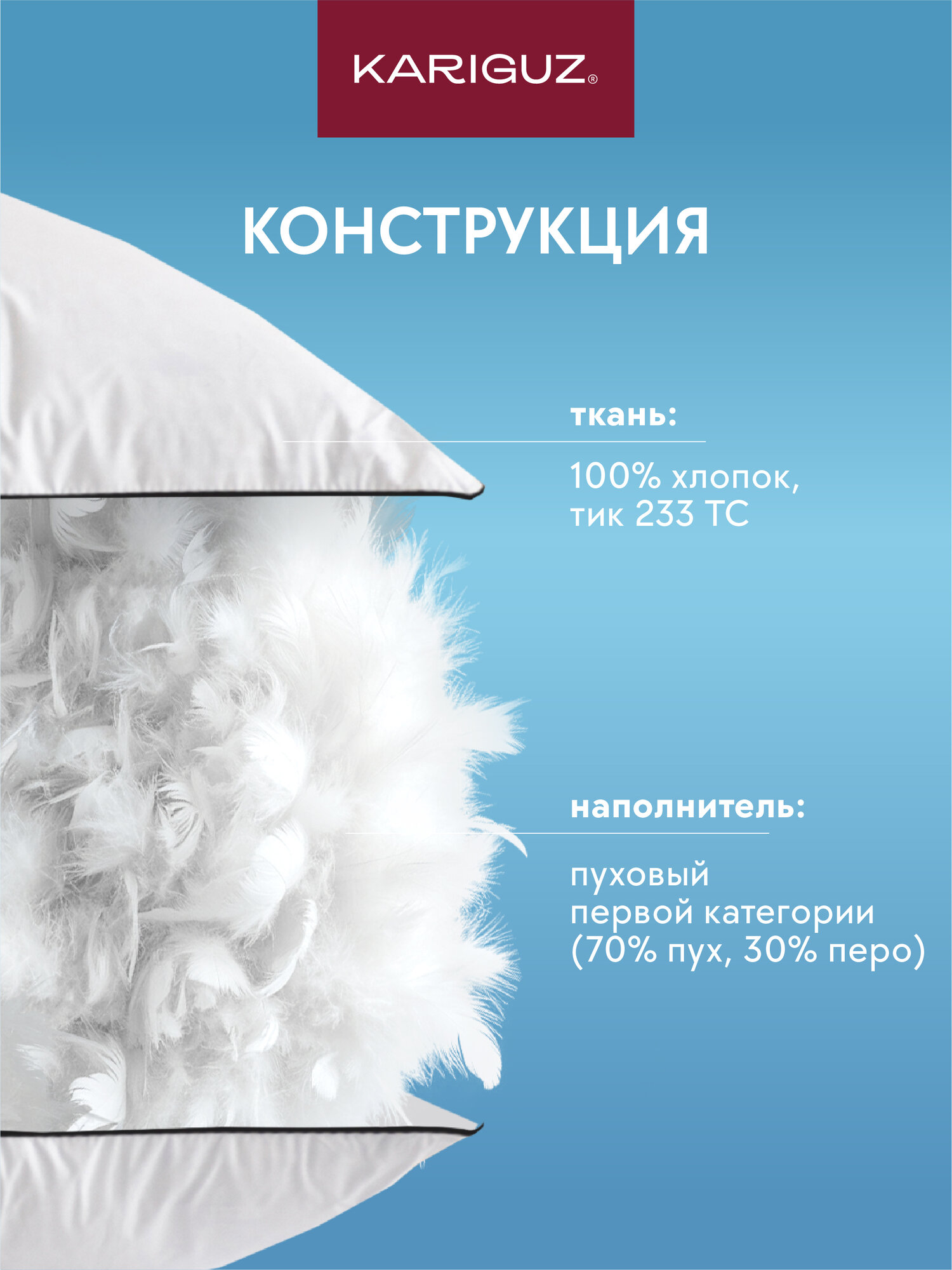 Купить Пухоперовая Подушка Kariguz «Фортуна» 70×70, средняя поддержка, хлопковая, белая с доставкой по всей России.