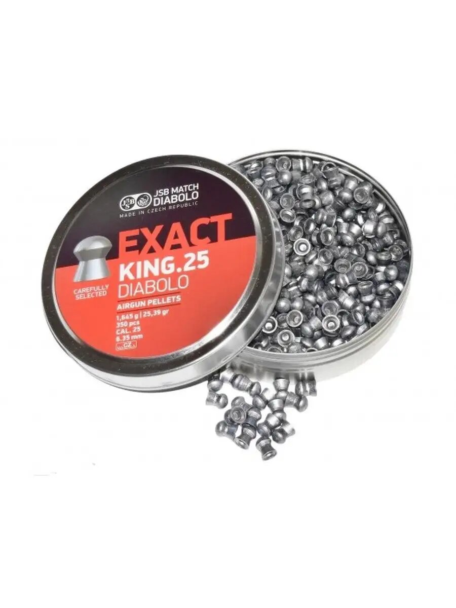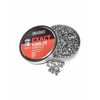 Пули для пневматики 6.35 мм JSB Exact King — это тяжелые свинцовые пули с полусферической головной частью от чешского производителя JSB. Отлично подходят для охоты на большие дистанции. Обладают хорошей проникающей способностью и большой убойной силой. Пули в количестве 350 штук средним весомторговых марок H&N, Crosman, JSB, Gamo, RWS и другие выпускают пули калибра 6.35, которые применяются для мощной пневматики РСР с предварительной накачкой. В основном это винтовки с дульной энергией 25 Дж и выше. Снаряды обладают великолепными баллистическими характеристиками: имеют минимальное аэродинамическое сопротивление и предсказуемую траекторию полета на всей дистанции. Благодаря использованию качественных материалов пули не деформируются при прохождении по каналу ствола под воздействием сжатого воздуха. Высокая поражающая способность таких снарядов позволяет охотиться на птиц и зверей среднего размера (гусей, уток, зайцев, лис). Пули для пневматики подойдут как опытному стрелку, так и новичку. Пули отличный подарок на 23 февраля, день рождения. Пули для пневматики калибр 6,35 мм подходят для: пневматическая винтовка Hatsan, Kral, Атаман.