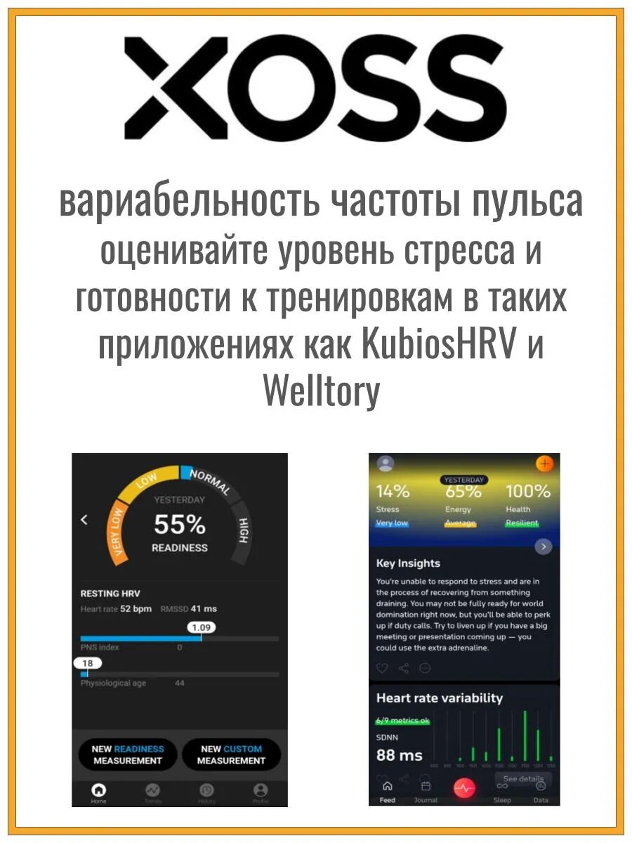 XOSS X2 - современный нагрудный пульсометр (кардиомонитор, монитор сердечного ритма, датчик ЧСС) для спорта, фитнеса и активного образа жизни. Он оснащен протоколами Bluetooth и ANT+, что делает его универсальным инструментом для отслеживания параметров сердцебиения во время тренировки. Датчик сердечного ритма без труда подключится к любым современным спортивным часам и велокомпьютерам, таким как Garmin, Polar, Suunto, XOSS, Huawei, Wahoo, Coros и другим(убедитесь в том, что ваши часы поддерживают подключение сторонних датчиков пульса). Также ваш пульсометр можно подключить к мобильному телефону, используя приложение XOSS, либо любое другое популярное приложение, работающее с внешними датчиками, такое как Strava, Zwift, TrainingPeaks, EliteHRV, KubiosHRV, Welltory, MapMyRun и многие другие.