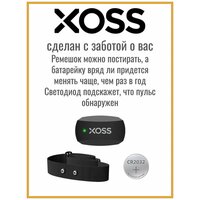 Приложение XOSS не только сохраняет ваш пульсометр в памяти, но и позволяет отслеживать заряд батареи. Элемент питания CR2032, входящий в комплект, в среднем служит порядка 300 часов. Пульсометр использует протокол BLE с чрезвычайно низким энергопотреблением.