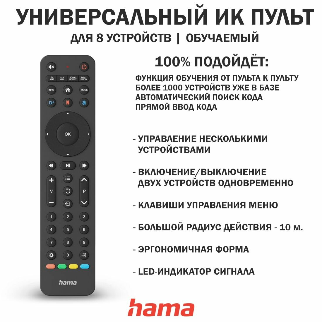Пульт дистанционного управления ТВ, ИК, для 8 устройств, Черный, Hama: сравнение цен, характеристики, фото, актуальное наличие и цены.
