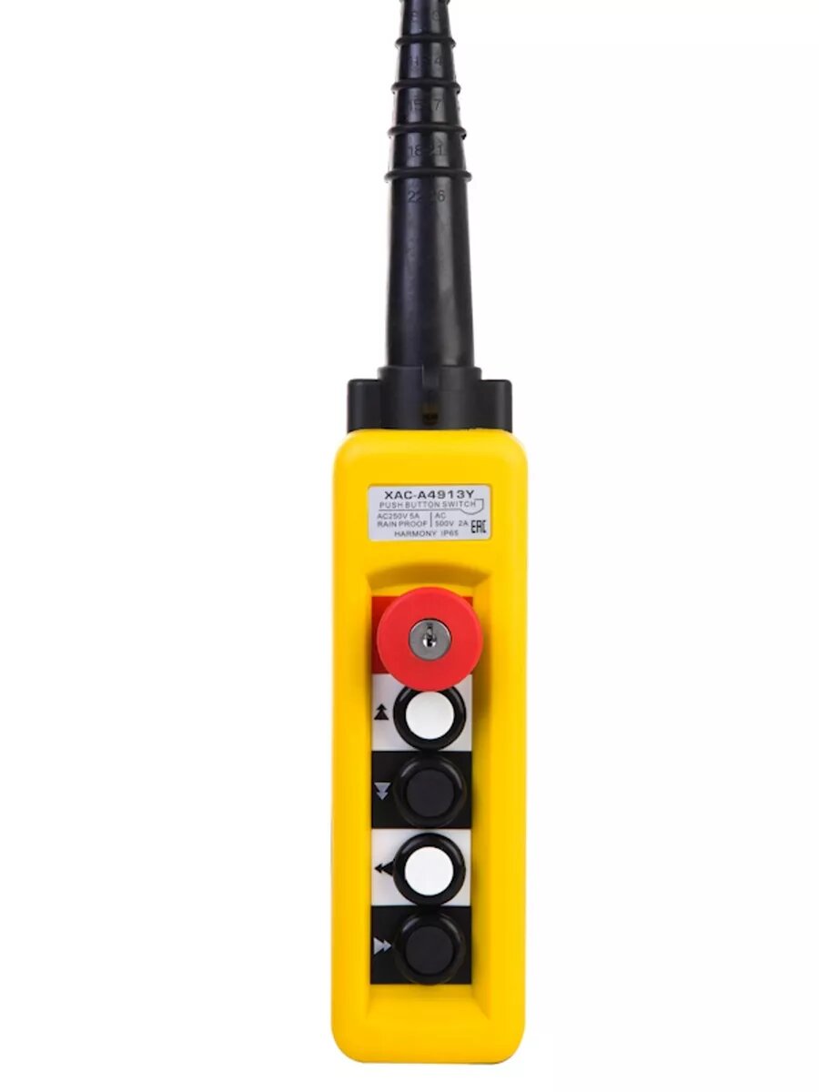 Пульт для промышленных тельферов 4 кнопки, 1 скорость, стоп, ключ, IP55 (без кабеля): сравнение цен, характеристики, фото, актуальное наличие и цены.