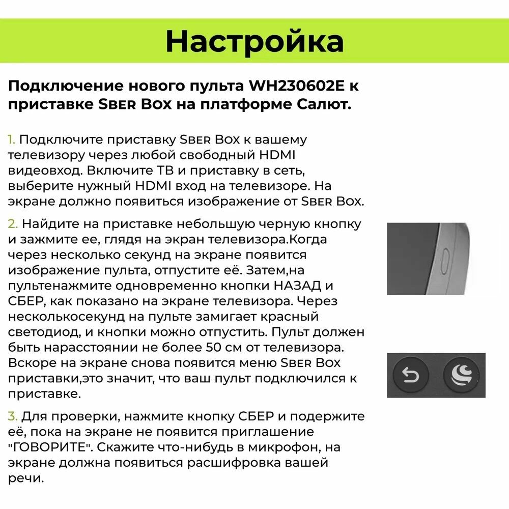 Пульт для Sber WH230602E SBR-V3 SBER салют ТВ