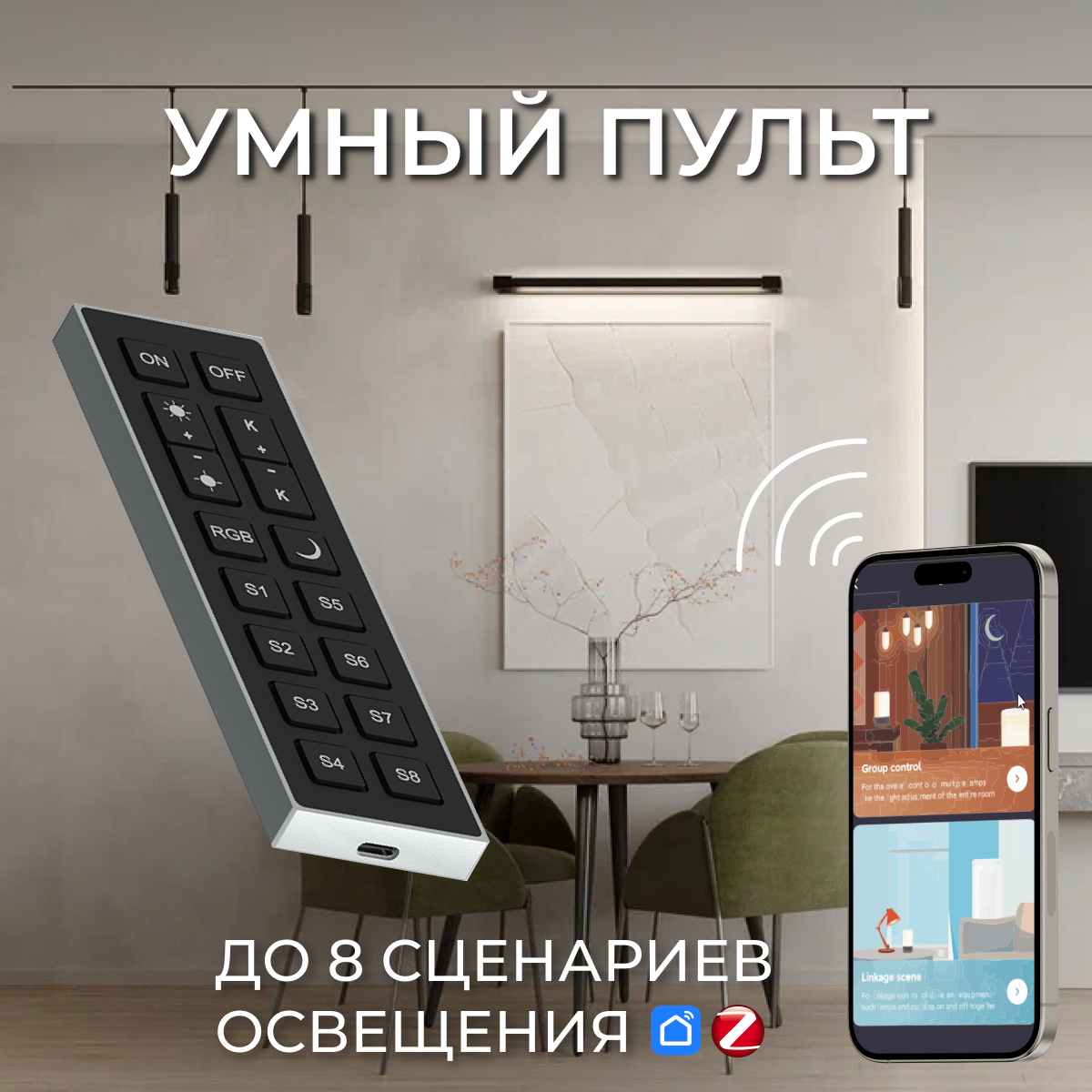 Размер: 155*45*10мм Цвет: черный Особенность: настройка яркости, цвета, температуры, программирование до 8 сценариев освещения, режим ночника, режим RGB. Работает по протоколу Zigbee, Привязка и дальнейшая настройка производится в приложении Smart Life.