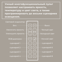 Характеристики Особенность: настройка яркости, цвета, температуры, программирование до 8 сценариев освещения, режим ночника, режим RGB. Рабочая температура: -10°C — +45°C Артикул: 2C1YK0020
