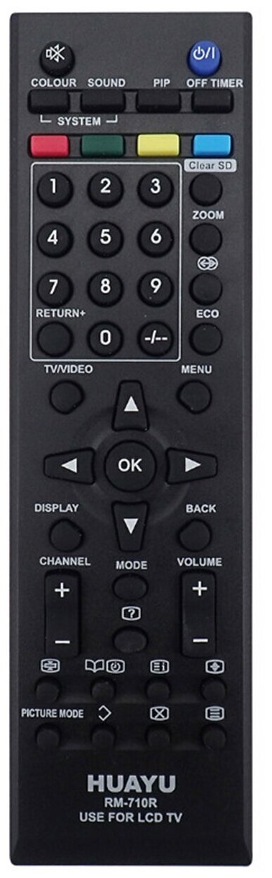 Пульт ДУ HUAYU RM-710R, универсальный, для телевизоров JVC, ИК, чёрный