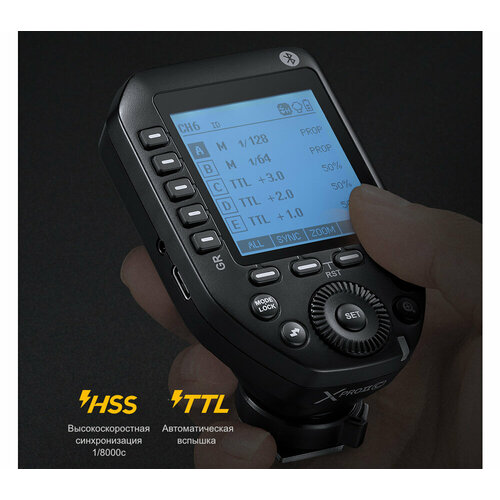 Пульт-радиосинхронизатор Godox XproII F позволяет синхронизировать фотокамеру Fujifilm и вспышки Godox , имеющие встроенную систему Godox 2,4G X. С помощью XproII F можно настроить параметры и запустить дистанционно группу из студийных, аккумуляторных или накамерных вспышек. Синхронизатор может использоваться с различными моделями фотокамер Fuji (с режимом TTL), а также с камерами, снабженными гнездом PC для синхронизации. Надежный запуск и множество настроек Совместимый с беспроводной радиосистемой Godox X с частотой 2,4 ГГц, радиосинхронизатор XProII F позволяет эффективно и надежно запускать вспышки на расстоянии до 100 метров, удаленно регулировать режим вспышки, выходную мощность, пилотный моделирующий свет и многое другое. Godox XproII F совместим с системой TTL от Fuji, включая поддержку высокоскоростной синхронизации до 1/8000 секунды. В дополнение к базовым режимам ручного управления и TTL доступны и другие настройки, включая функцию стробоскопа . Также возможно установить синхронизацию по первой или второй шторке S1/S2 в оптическом режиме. Кроме того, пользователи могут настроить компенсацию экспозиции вспышки от -3 до 3 EV, управлять настройкой масштабирования и многим другими функциями. 16 групп, 32 канала, 99 ID В распоряжении радиосинхронизатора предоставлены 16 групп и 32 канала, чтобы выбрать наименее занятую частоту без помех и запустить одну вспышку или вспышки, объединенные в общую группу. Для удобства настройки групп и каналов могут задаваться 99 беспроводных идентификаторов ID. Наиболее помехоустойчивый канал и ID может быть найден функцией сканирования, что особенно важно на площадке, где работает несколько фотографов. Портативность и легкость управления Несмотря на компактные размеры, пульт-радиосинхронизатор Godox XproII F обладает большим ЖК дисплеем, диском-мультиселектором, 5 кнопками групп и 4 функциональными кнопками, которые обеспечивают быстроту и легкость настройки. На панели управления также присутствует кнопка «Тест/Спуск затвора» для тестового запуска и другие кнопки управления. Обновление прошивки синхронизатора осуществляется через разъем USB-type С, рядом с которым присутствует гнездо jack 2,5 мм для запуска через синхрокабель. Совместная работа с экспонометром Sekonic Благодаря совместной работе XProII и Sekonic L-858, параметры вспышки можно регулировать непосредственно на экспонометре. В этом случае Godox XproII F передаст только сигнал для запуска ведомого устройства. Приложение Godox Flash XproII оснащен модулем Bluetooth, благодаря которому параметры освещения можно легко настроить прямо на мобильный устройствах c операционной системой iOS/Android (смартфонах или планшетах). Приложение Godox Flash имеет понятный пользовательский интерфейс, чтобы работа со вспышками стала еще проще. Система быстрой блокировки Радиосинхронизатор XproII C/N/S/F/O устанавливается в «башмак» фотокамеры и фиксируется с помощью системы блокировки. Такое крепление гарантирует, что беспроводной радиосинхронизатор остается надежно закрепленным на горячем башмаке. Режим SHOOT: один фотограф и несколько фотографов Настройка режима SHOOT позволит нескольким фотографам установить свои собственные настройки и работать на одной площадке с одной группой вспышек. В отличие от режима «один фотограф», когда пульт-радиосинхронизатор отправляет параметры на ведомые устройства только при их изменении, в режиме «не