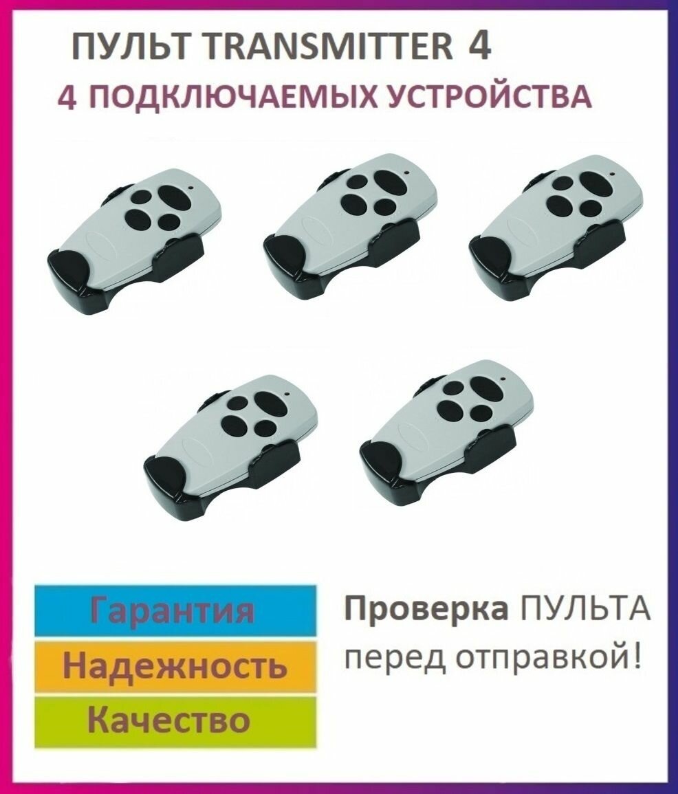 Купить Пульт Transmitter-4 для ворот и шлагбаумов, брелок передатчик 5 штук с доставкой по всей России. Пульт Transmitter-4 для ворот и шлагбаумов, брелок передатчик 5 штук: сравнение цен, характеристики, фото, актуальное наличие и цены.