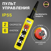 Купить Пульт управления для промышленных тельферов 6 кнопок, 2 скорости, стоп, ключ, IP65 (без кабеля) с доставкой по всей России.