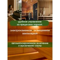 Невероятно тонкий и вдохновляюще стильный пульт управления SAWO SAUNOVA 2.0 - превосходная модель для парных с электрокаменками с электронным управлением, таких как серии как: ARIES NI2 CUBOS NI2 Nordex NI2 CUMULUS NI2 PHOENIX NI2 TOWER NI2 Сенсорные клавиши пульта подсвечены контрастным красным в тон информационному табло. Подсветка не только ярко, но и весьма эффектно смотрится на фоне чёрного корпуса и экрана. К данной модели подключается не только управление электрокаменкой, но и освещение c вентиляцией в сауне, что вдвойне удобно. Пульт позволяет настроить режим парения на ближайшие 0-12 часов и отложить старт на 1-24 часов, а также автоматизировать включение и выключение сауны. Последняя функция будет весьма прагматична при эксплуатации в коммерческой бане. Функция блокировки клавиатуры станет незаменима для семейных саун с детьми. Подключение пульта произвотится к сети с напряжением 220В или 380В. Компания SAWO предлагает своим потребителям производить все необходимые настройки микроклимата в инфракрасной сауне используя современные технологии. Удобный пульт управления SAWO SAUNOVA 2.0 позволит заранее программировать режим отдыха и в одно касание изменять настройки во время процедур. Пульт SAWO SAUNOVA 2.0 имеет интуитивно понятный простой интерфейс и необыкновенно эстетичный внешний вид.