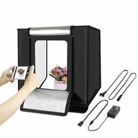 Комплектация: 1) Складной фотобокс 60 см. 2) Разноцветные фоновые вставки - 6 штук. 3) Светодиодная панель - 2 штуки 4) Адаптер 220 вольт. 5) Чехол Размер фотобокса: 60 см * 60 см * 60 см. Гарантия : 1 месяц
