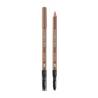 Карандаш для бровей стойкий TRUE EYEBROW PENSIL отличается чистым, хорошо переданным цветом и качественно проработанной Pupa текстурой. По структуре и по тому, как ложится, сильно напоминает пудровый карандаш. Благодаря этому брови будут выглядеть максимально естественно. На обратном конце — расчёска. Она помогает аккуратно привести в порядок даже густые брови, задать им нужное направление. У карандаша для бровей TRUE EYEBROW PENSIL — повышенная концентрация пигментов, благодаря чему насыщенный оттенок получается буквально с первого взгляда, вам не нужно будет долго экспериментировать. Это очень удобно для тех, кто хочет просто достать карандаш и быстро поправить брови, например, в дороге. По комфорту использования во многом напоминает маркер для бровей. Так же хорошо позволяет прорисовать каждый волосок. Карандаш TRUE EYEBROW PENSIL — это прекрасное решение для заполнения пустого пространства. Можно использовать для макияжа бровей, варианты — от натурального оттенка и до предельно насыщенного. Так что если вы ищете для бровей карандаш, который поможет создавать разные образы без особых проблем, вам необходимо обратить внимание на эту косметику. Крышка и корпус карандаша идеально совпадают с цветом грифеля. Это очень удобно для тех, кто пользуется одновременно несколькими карандашами для бровей, поскольку долго искать нужный в косметичке не приходится. Стоит учесть, что TRUE EYEBROW PENSIL — механический карандаш, который нужно точить. Однако в отличие от автоматического карандаша, такое косметическое средство позволяет самостоятельно определять степень толщины линии. В линейке есть 3 популярных оттенка (коричневый, тёмно-коричневый и светло-коричневый), так что подобрать можно любой вариант под цвет кожи и волос. Карандаш прекрасно сливается с бровями, гарантирует прекрасную цветоотдачу сразу же после первого нанесения. Отлично подходит для естественного финиша. Если Вам ещё не знакомы карандаши для бровей TRUE EYEBROW PENSIL, обязательно попробуйте. Красить нужно по направлению роста волос. Если придать им нужное направление сложно, поможет аппликатор. Он зафиксирован на обратной стороне карандаша. Щёточка позволяет заняться моделированием бровей, придать им какой угодно вид. Но если вы хотите, чтобы всё выглядело естественно, брови необходимо расчёсывать по направлению к внешней стороне. Карандаш для бровей с щёточкой не займёт много места в косметичке. Без упаковки он весит всего чуть больше 1 грамма, так что Вы его даже не заметите. Зато карандаш позволит быстро привести себя в порядок. Отлично затачивается, не ломается в процессе, не становится слишком острым. Жёсткость карандаша — средняя, скользит по коже довольно легко, неприятных ощущений не оставляет. Можно без проблем прорисовать любые брови, какие угодно. Классический коричневый оттенок напоминает цвет молочного шоколада. Он не очень тёмный, в большей степени нейтральный. Органично будет смотреться на блондинках, шатенках, рыжих и брюнетках, то есть ограничений по цветотипу нет. Если хочется добиться большей насыщенности, можно экспериментировать, несколько раз обрабатывая участки с минимальным количеством волос или без волос. При желании получить более тёмный макияж, нужно выбрать соответствующий оттенок карандаша для бровей. В серии TRUE EYEBROW PENSIL он представлен. Если у вас — очень светл