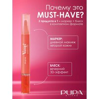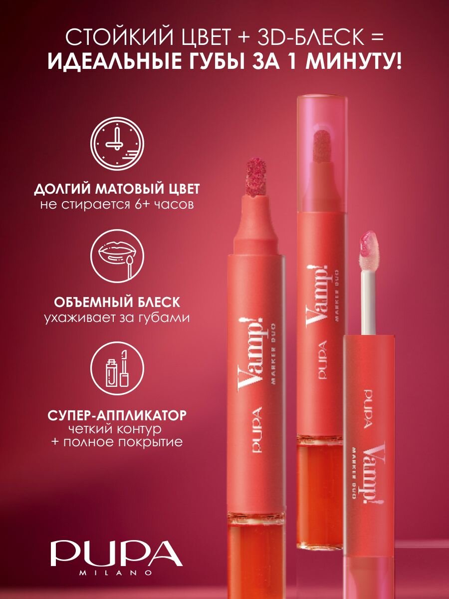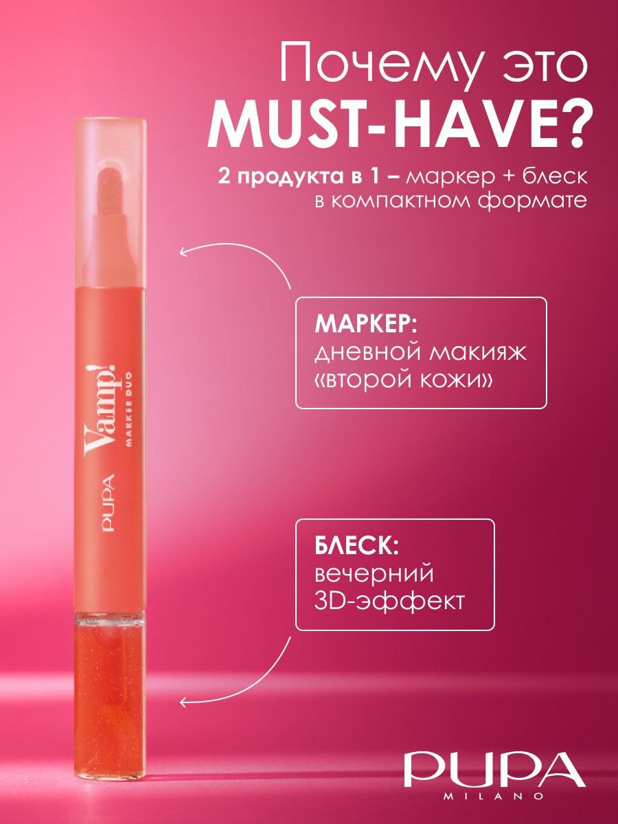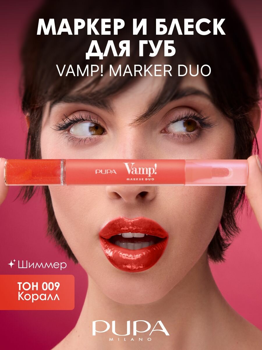 Купить PUPA Маркер и блеск для губ VAMP! MARKER DUO тон 009 Коралл с доставкой по всей России.