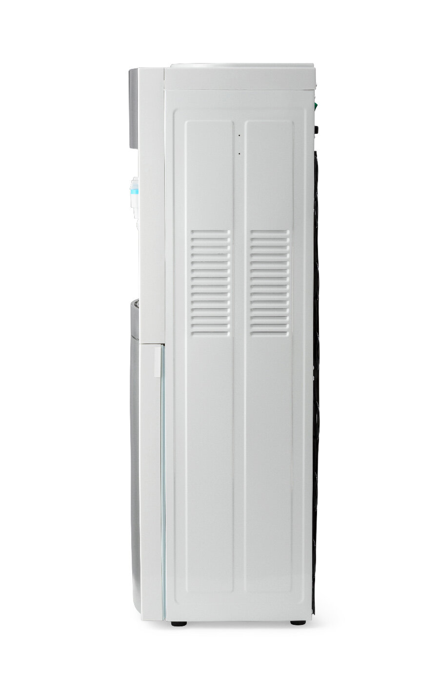 Напольный пурифайер компрессорного типа с 4-х UF системой очистки. Внешний нагревательный элемент и бак нагрева 1,2л. Удобные краники "нажим кружкой" с внутренней резьбой. Цвет - белый с серебристыми вставками, боковые панели белого цвета. Комплектация: кран врезки, трубка 1/4 - 3 метра, фильтры тип - I тип, фильтры размер - 12".