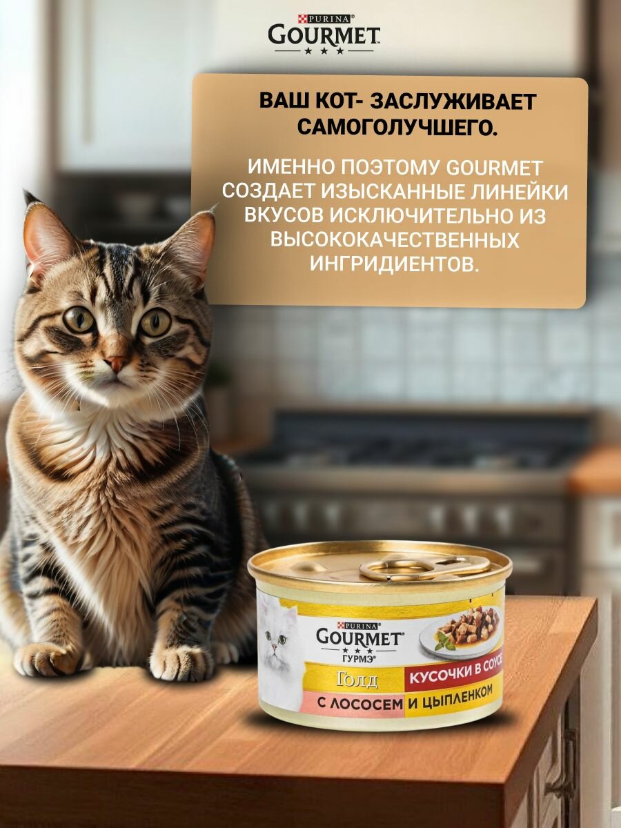 Purina Gourmet Gold влажный корм для кошек , лосось с курицей в соусе, 6штх85гр. 06 2026: сравнение цен, характеристики, фото, актуальное наличие и цены.