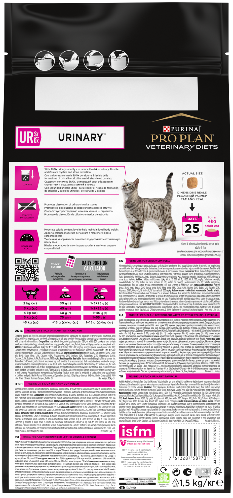 Корм сухой полнорационный диетический для взрослых кошек при болезни нижних отделов мочевыводящих путей, с курицей. Корм рекомендуется для растворения струвитных камней и снижения вероятности их повторного образования, со свойствами подкисления мочи и низким содержанием магния. Продукт разработан также для диетотерапии кошек с заболеваниями нижних отделов мочевыводящих путей.