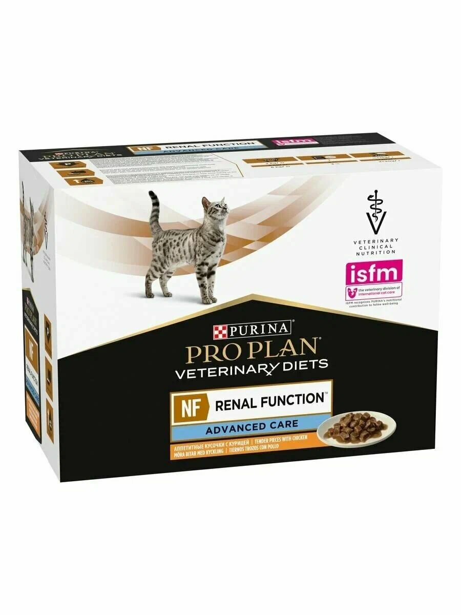 Purina Pro Plan Veterinary Diets NF Renal Function Advanced Care влажный корм для кошек для поддержания функции почек на поздней стадии хронической почечной недостаточности , с курицей (10шт по 85г)