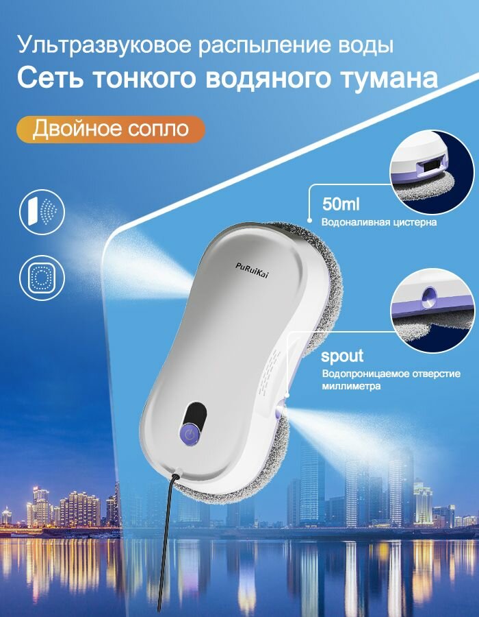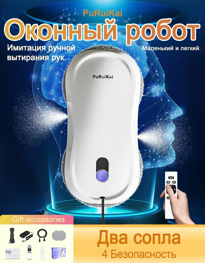 Купить Puruikai Робот — стеклоочиститель с двойным распылением, робот — стеклоочиститель с доставкой по всей России.