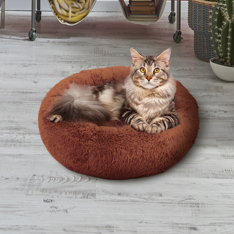 Купить Пушистая лежанка d80 см +-5 см для крупных кошек и собак цвет шоколадный артикул PNL80 с доставкой по всей России.