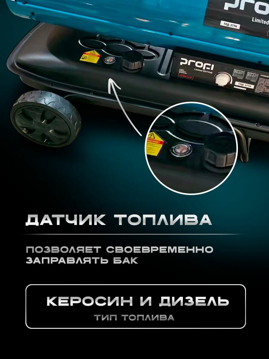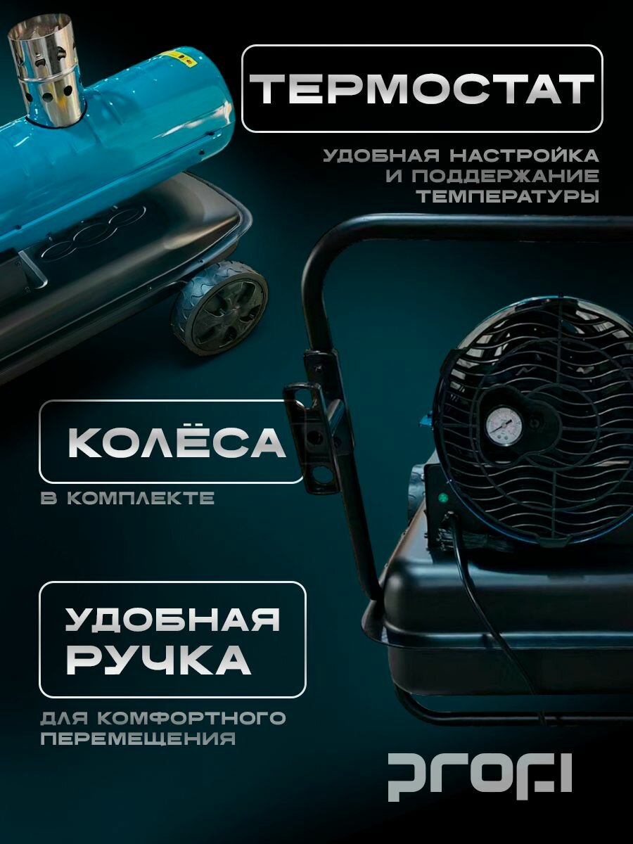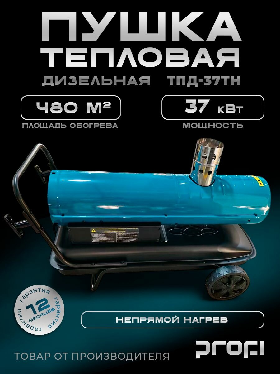 Пушка тепловая дизельная непрямого нагрева PROFI ТПД-37ТН (термостат, колеса) 37кВт, 480 кв. м, для дачи и гаража: сравнение цен, характеристики, фото, актуальное наличие и цены.