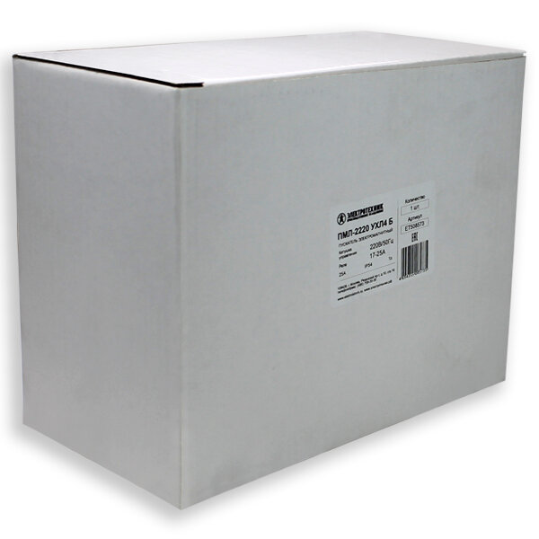 Пускатель электромагнитный ПМЛ-2220 УХЛ4 Б, 220В/50Гц, 1з, 25А, нереверсивный, с реле РТЛ-1022-2 17-25А, в корпусе из пластика IP54, с кнопками пуск + стоп (ЭТ), ET508573, ПО Электротехник: сравнение цен, характеристики, фото, актуальное наличие и цены.