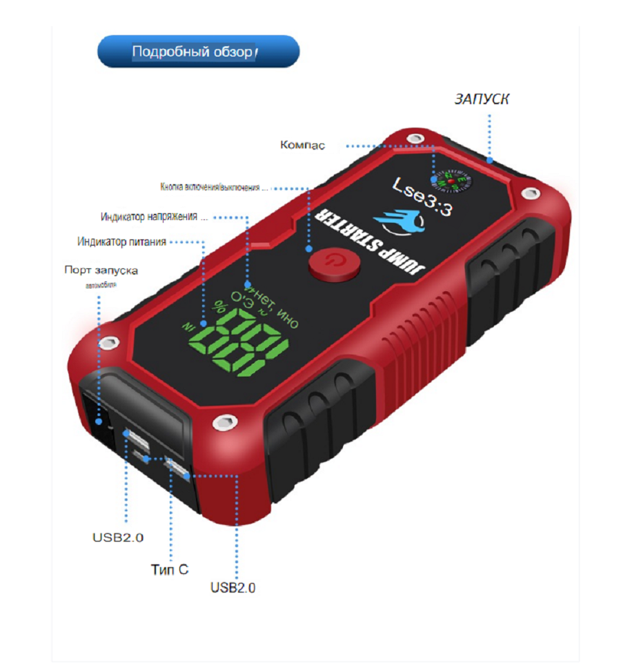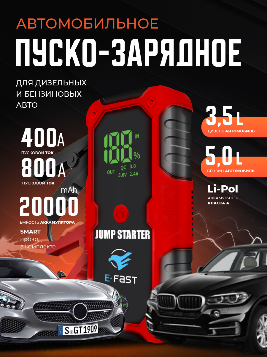 Пуско-зарядное устройство для автомобиля Jump Starter, автоматический режим, c фонарём и PowerBank: сравнение цен, характеристики, фото, актуальное наличие и цены.