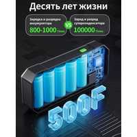 | Дополнительная информация | Емкость аккумулятора: 8000 мАч Пиковый ток: 1000A Бензин: 4,0 л Дизель:2,5 л 1. Установка четырех высококлассных батарей 2. Вход: 5 В/3 А Выход: 5 В/2,4 А 3. ЖК-светильник с дисплеем питания; 4. Светодиодный светильник, SOS, pos-функции; 5. Защита от короткого замыкания, защита от перегрузки по току; Интегральная плата, включая программное обеспечение и аппаратную защиту. |