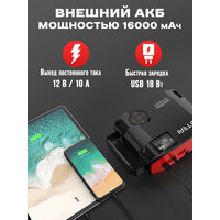 Дополнительные функции:-Компрессор 150PSI-Power Bank (зарядка мобильных устройств);-Фонарик с функцией SOS и стробоскопа. Пуско зарядное устройство отлично подойдет как подарок автомобилисту.