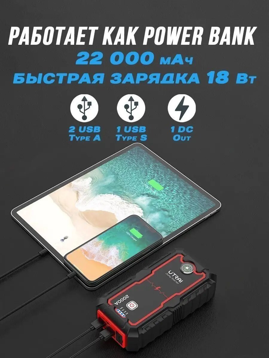 Пусковое устройство бустер Utrai 16000мАч 2000A Портативное пуско-зарядное устройство для автомобиля. Jump starter. Powerbank. Buster: сравнение цен, характеристики, фото, актуальное наличие и цены.