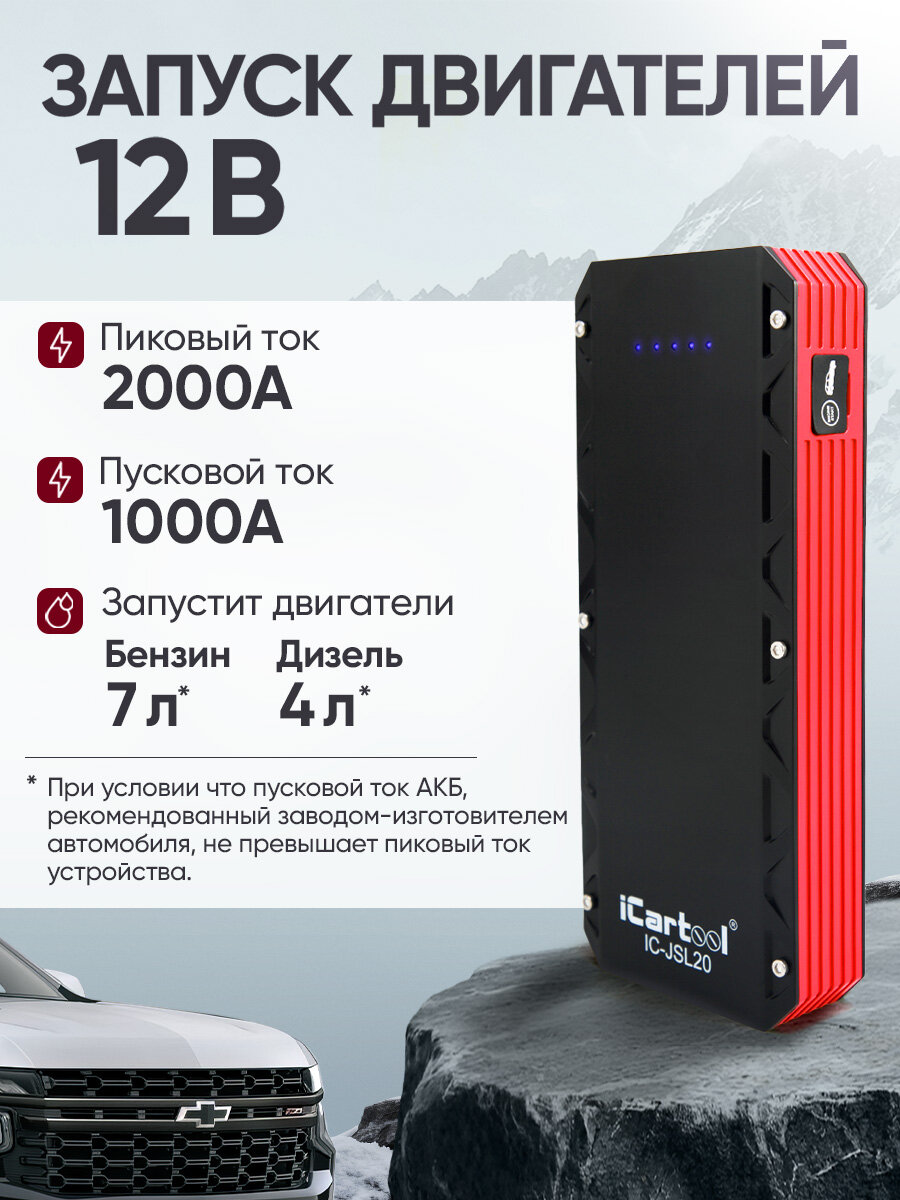 Купить Пусковое устройство 12В, 20 000 мАч, 1000/2000А iCartool IC-JSL20 с доставкой по всей России. Пусковое устройство 12В, 20 000 мАч, 1000/2000А iCartool IC-JSL20: сравнение цен, характеристики, фото, актуальное наличие и цены.