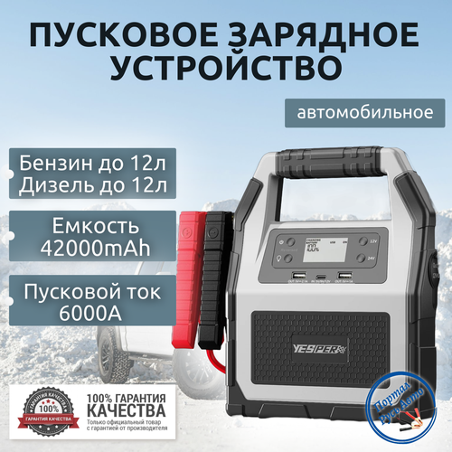 Автомобильное пусковое портативное устройство бустер YESPER 42000mAh 6000A 12-24В - это современное и функциональное решение для владельцев автомобилей.