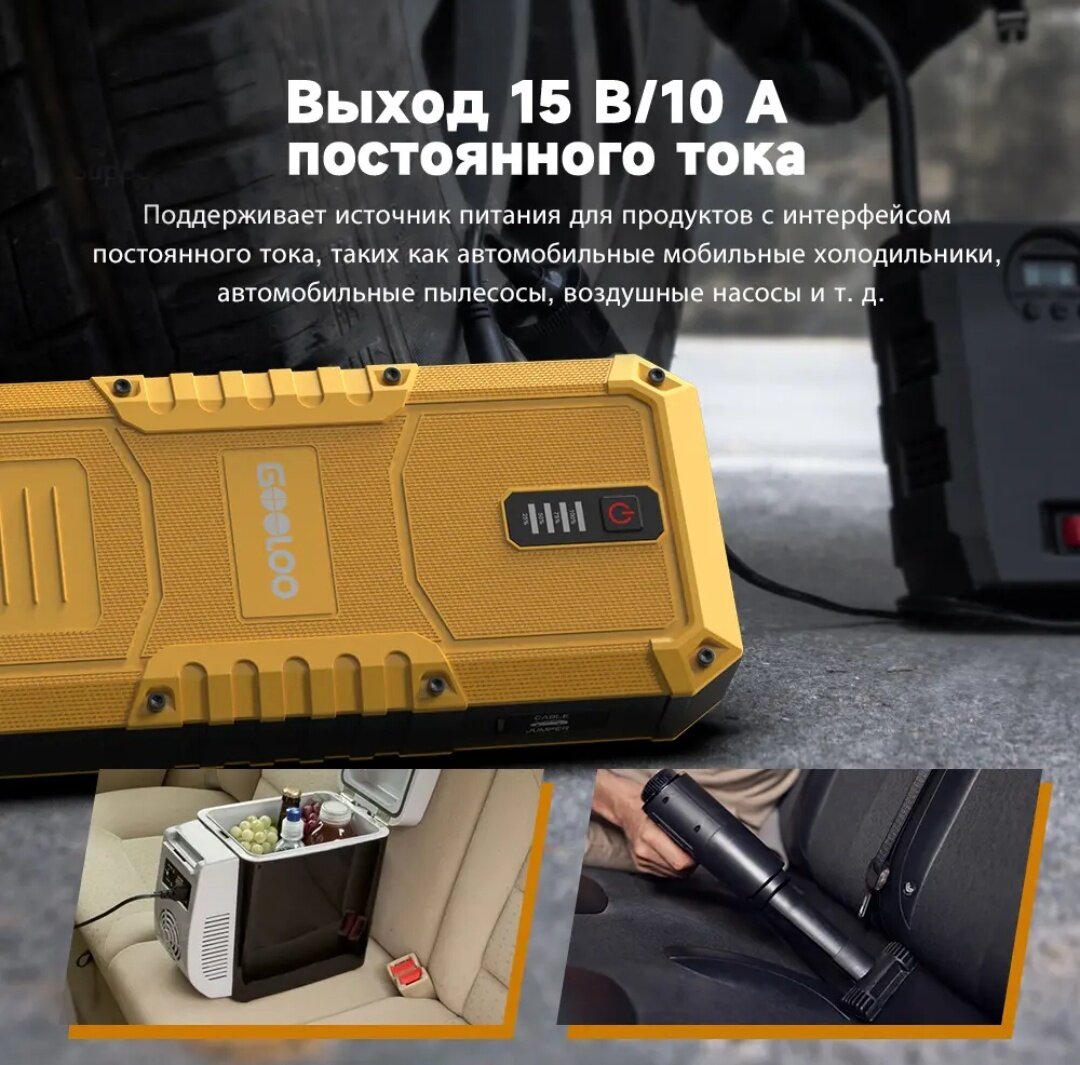 Пусковое устройство Gooloo GP4000 Pro 4000A - это незаменимый помощник для всех автомобилистов. Оно обеспечивает быстрый и безопасный запуск двигателя в случае разряда аккумулятора.