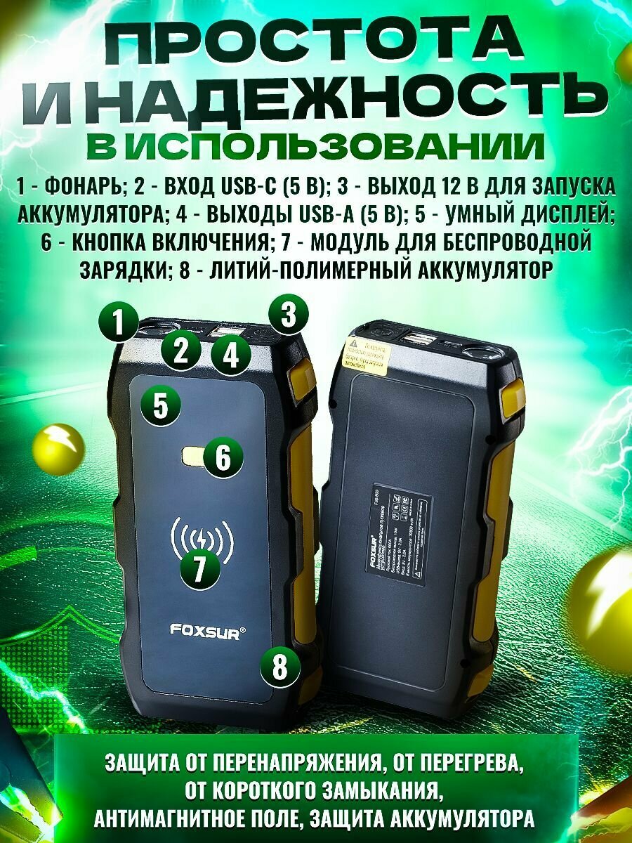Современный дизайн устройства обеспечивает его удобство и простоту в использовании. Этот компактный и высокотехнологичный девайс был разработан с применением новейших технологий и обладает высоким уровнем прочности. Высокая емкость батареи и мощность устройства позволяют проводить несколько пусковых операций и выполнять зарядку аккумулятора таких Пользовательский интерфейс устройства интуитивно понятен, что делает его простым в использовании даже без опыта.