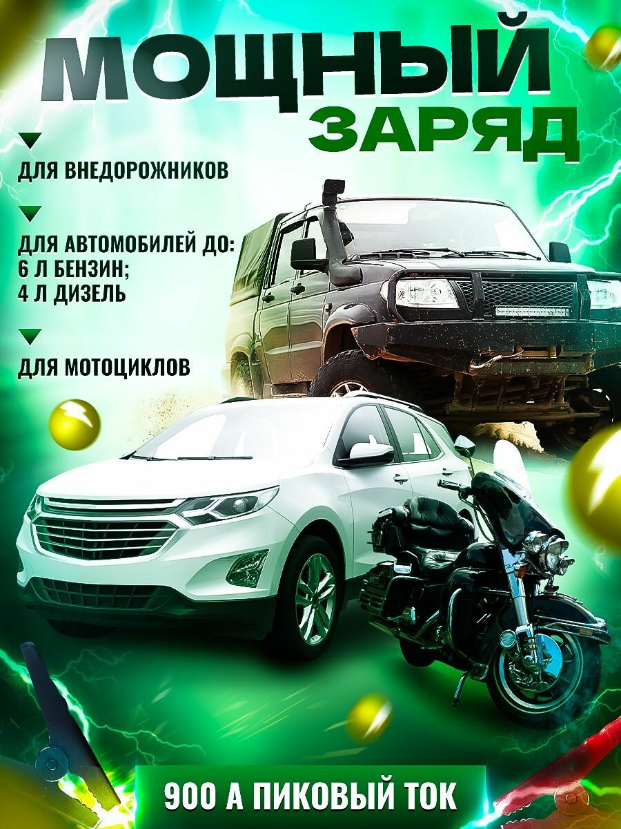 Устройство подходит для использования с аккумуляторами автомобилей, включая модели ВАЗ 2107, ВАЗ 2110 и ВАЗ 2114. Оно обеспечивает стабильный пуск двигателя и гарантирует надежное запускание автомобиля даже в холодные зимние условия. Стартер автомобильный с пиковым током 900А и емкостью батареи в 39800 мАч, позволяет запускать даже разряженный аккумулятор дизельных автомобилей до 6,0 л и бензиновых авто до 4 л соответственно.