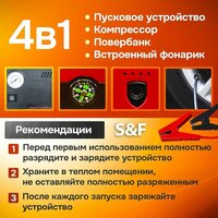 Пусковое устройство отличается мощностью и надежностью, что позволяет использовать его для различных типов автомобилей. Оно оснащено встроенным компрессором, который поможет вам поддерживать оптимальное давление в шинах, что особенно удобно в поездках. Устройство также имеет компактные размеры и легкий вес, что делает его простым в транспортировке и использовании.
