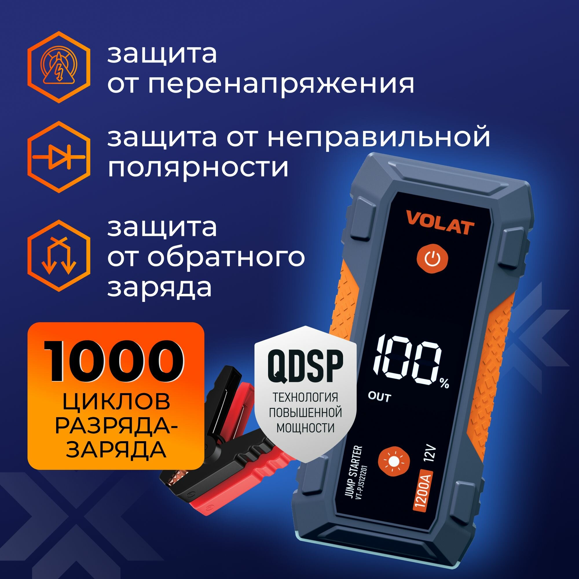 Пусковое зарядное устройство для автомобиля портативное модели VT-PJS121201 с пиковым током 1200 А. Джамп стартер для авто может легко запустить двигатель 12V (до 8 л бензина или 6,5 л дизельного топлива) за 1-2 секунды. До 60 раз.