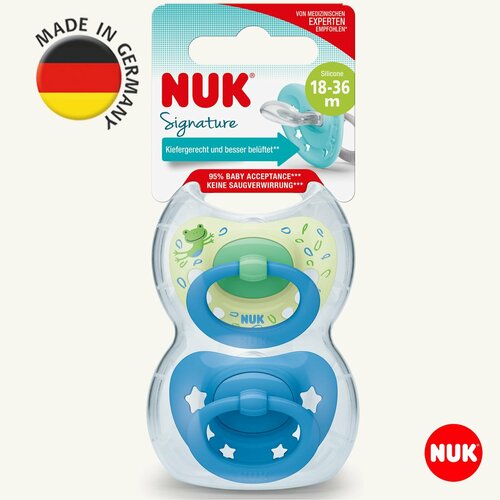 Соска-пустышка NUK Signature ортодонтической формы из силикона для детей 18 мес, размер 3
