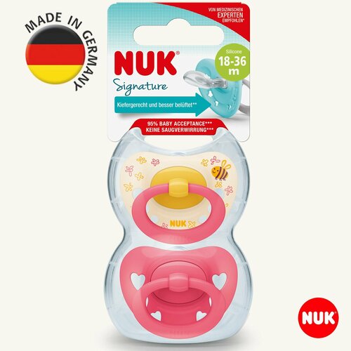 Соска-пустышка NUK Signature ортодонтической формы из силикона для детей 18 мес, размер 3