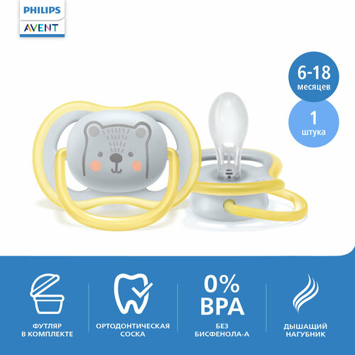 Пустышка ultra air с приятной на ощупь соской создана для легкого и комфортного использования.