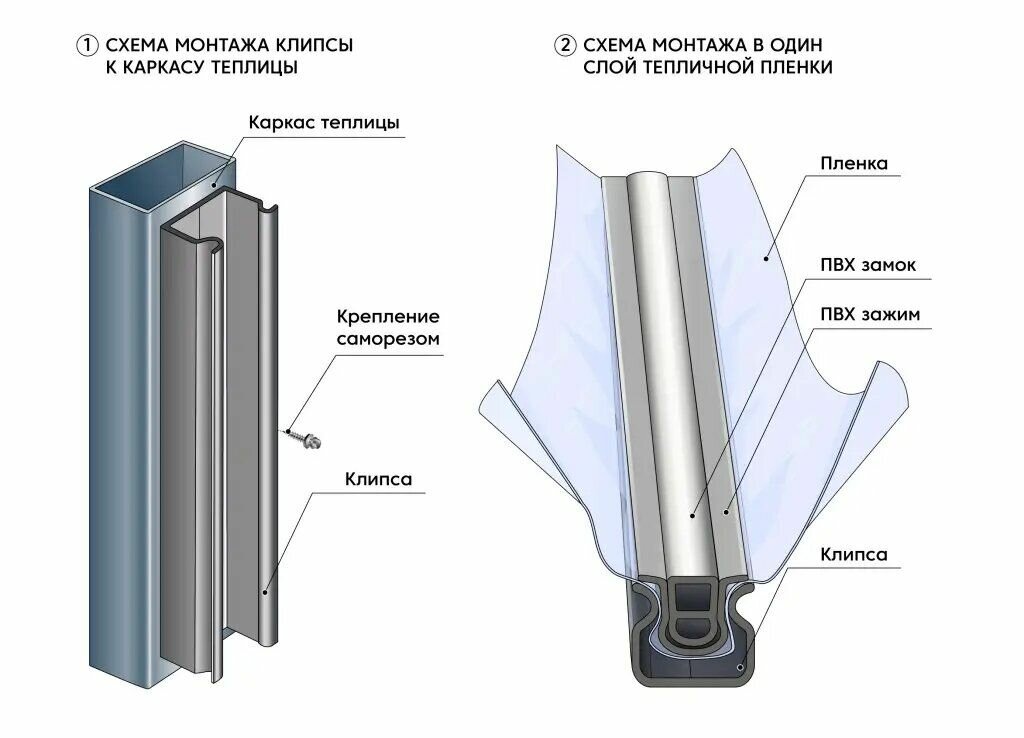 Комплект ПВХ профиль + алюминиевая клипса разработан для надежного и долгосрочного крепления пленки к теплице.