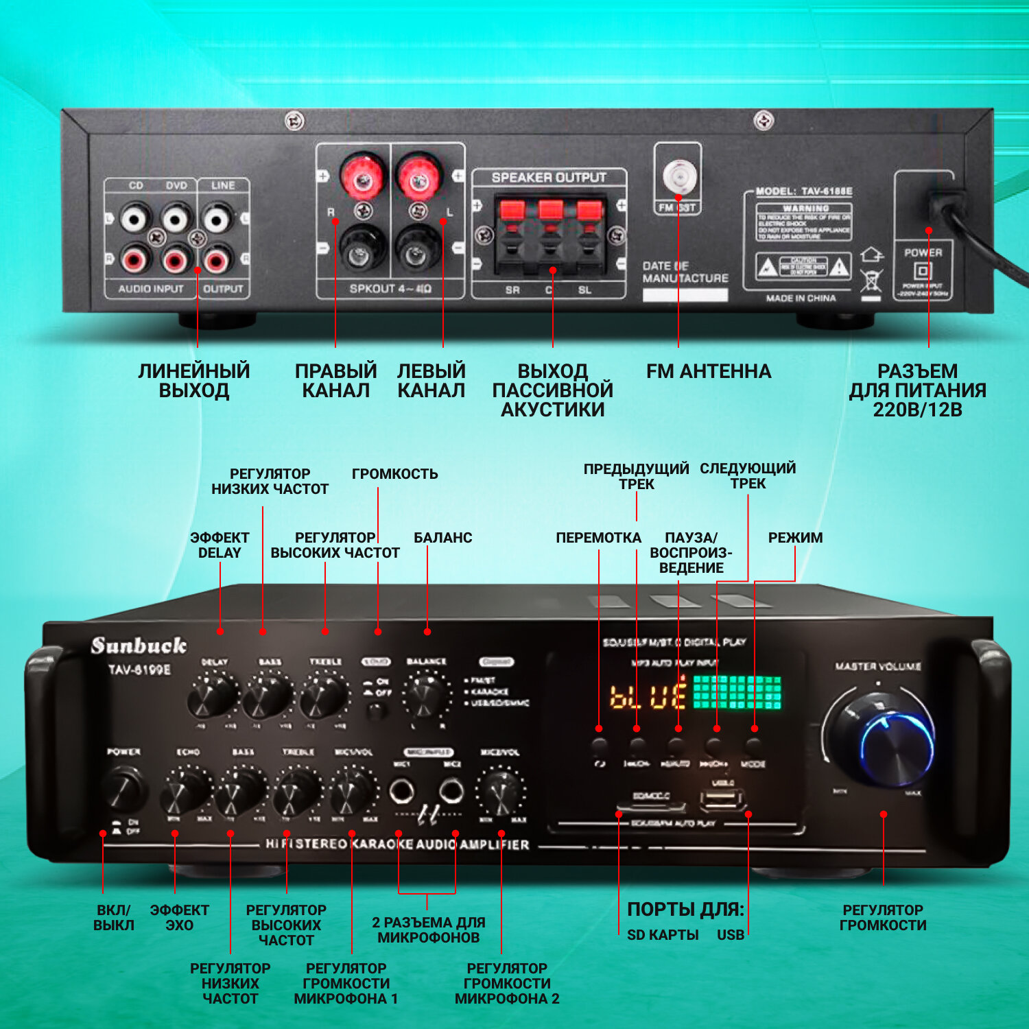Аудио усилитель звука Sunbuck TAV-6199E, Bluetooth, цвет черный: сравнение цен, характеристики, фото, актуальное наличие и цены.