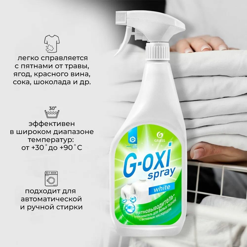 Пятновыводитель для белого белья GRASS G-oxi Spray White — это эффективное средство, созданное для борьбы с трудно выводимыми пятнами на белых тканях. Объем упаковки составляет 600 мл, что позволяет вам удобно использовать продукт на протяжении длительного времени.
