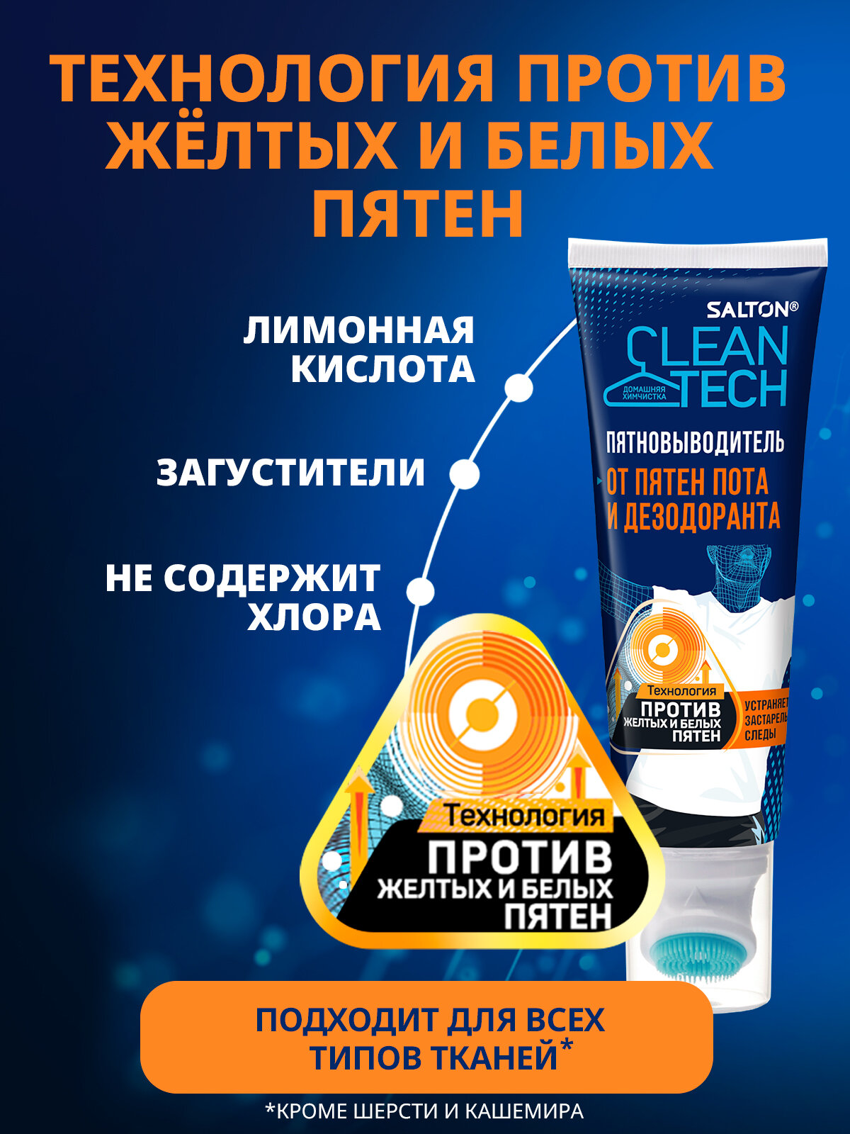 Пятновыводитель от пятен пота и дезодоранта для белого и цветного белья удаление пятен Salton CleanTech, 120 мл х 2 шт: сравнение цен, характеристики, фото, актуальное наличие и цены.