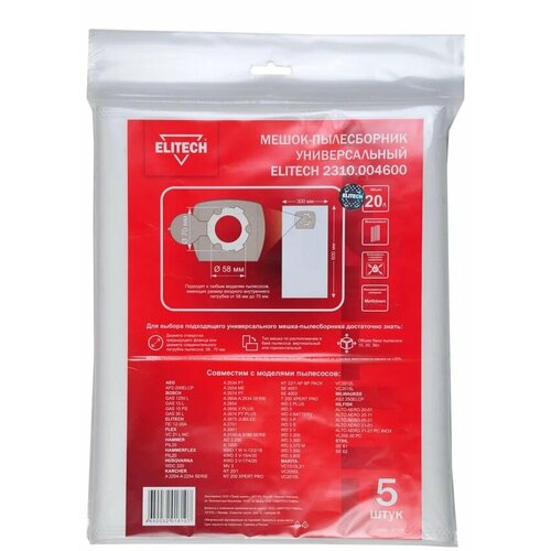 Пылесборник ELITECH 2310.004600, универсальный, 20 л, 5 шт.