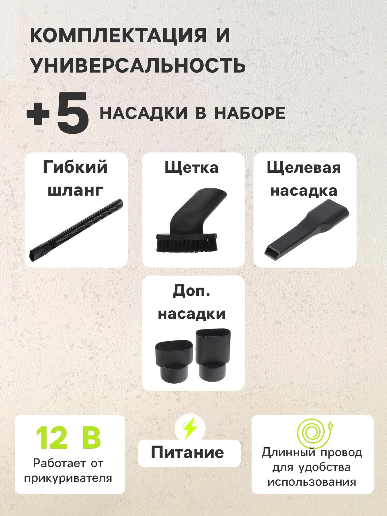 Пылесос автомобильный CARTAGE, 5 насадок, 120 Вт, 12 В, черный: сравнение цен, характеристики, фото, актуальное наличие и цены.